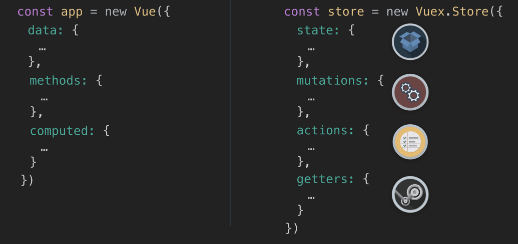 - Vuex 애플리케이션은 store 입니다. "저장소"는 기본적으로 애플리케이션 상태를 보관하는 컨테이너입니다.