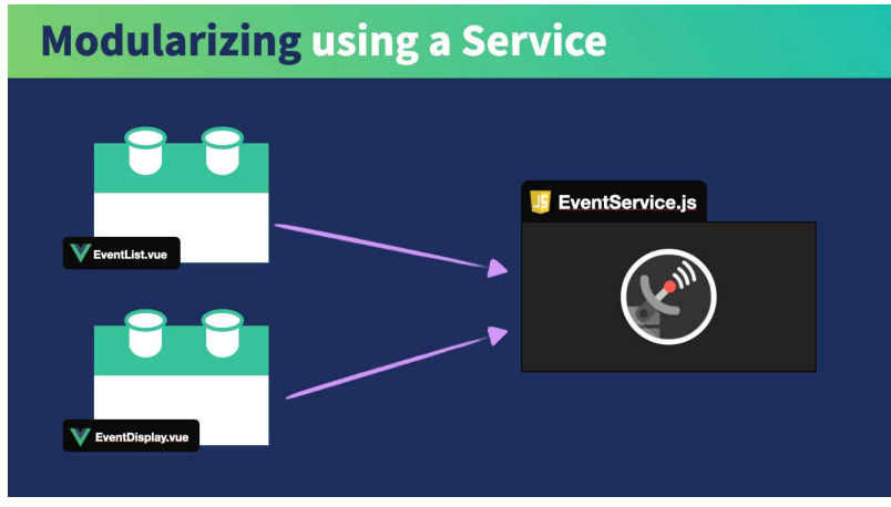 EventList.vue component 내에서 이 새로운 EventService를 활용하고, Axios import를 삭제하고, EventService를 import하고, getEvents() 호출을 실행하면 됩니다.