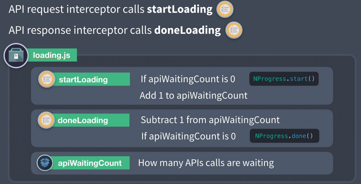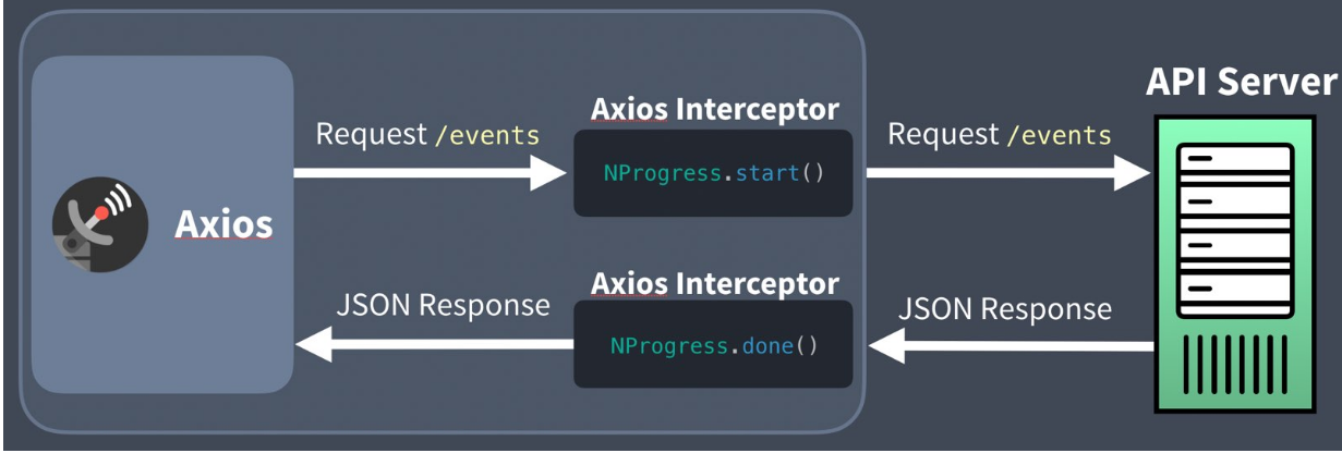 Axios Interceptors allow us to intercept our requests and responses adding additional functionality, like starting and stopping a progress bar.