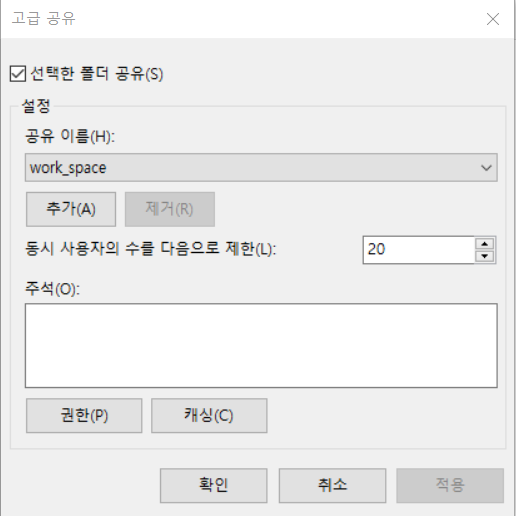 • 고급공유 실행 -> 권한은 모든 권한 허용