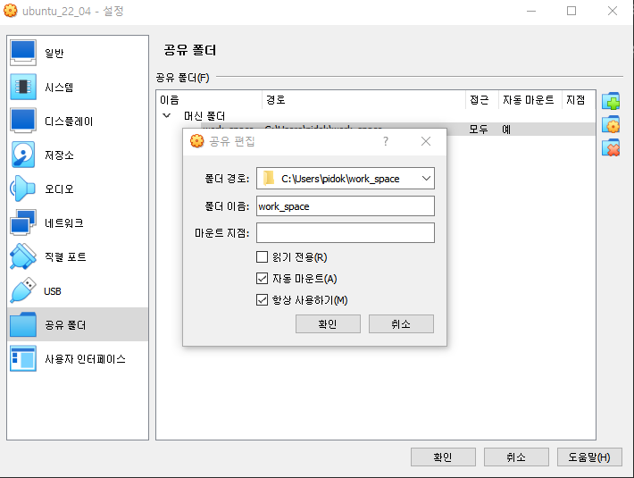 VirtualBox ubuntu와 windows 10 간에 파일 공유하기