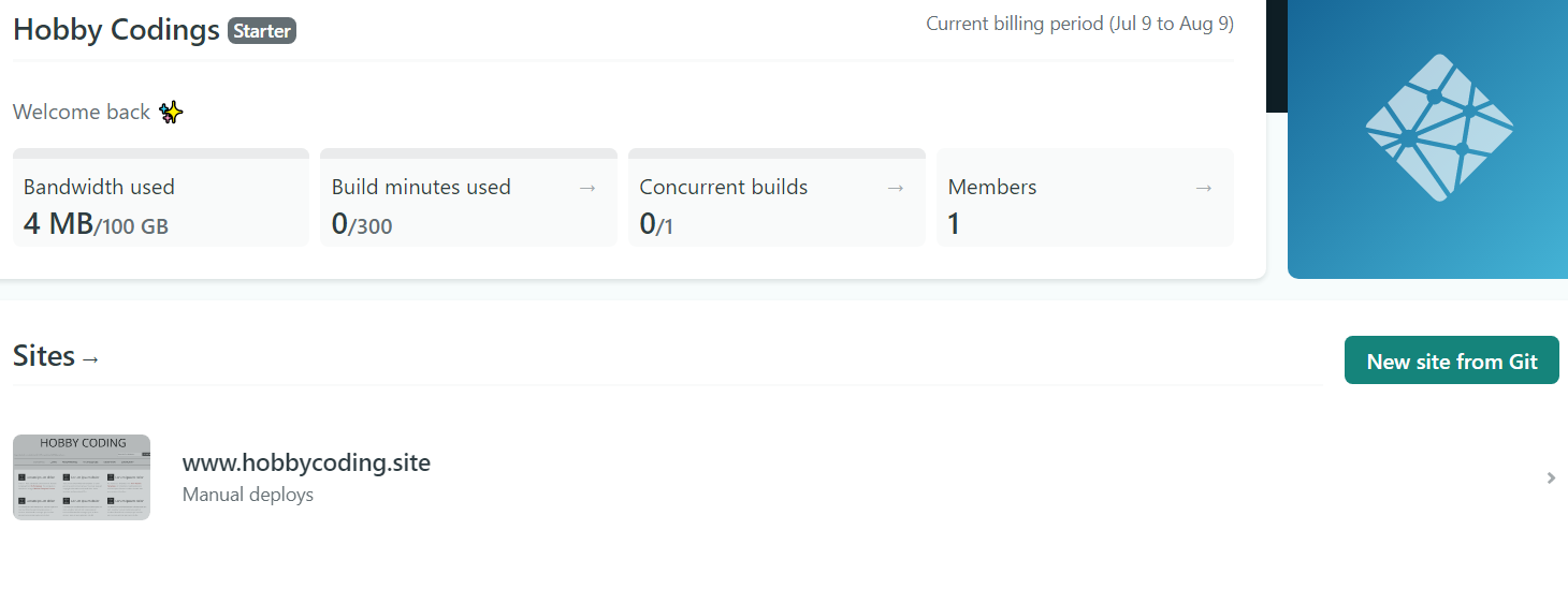 구매한 domain name (hobbycoding.site) 을 netlify.com 을 통해 무료로 hosting 하는 방법.