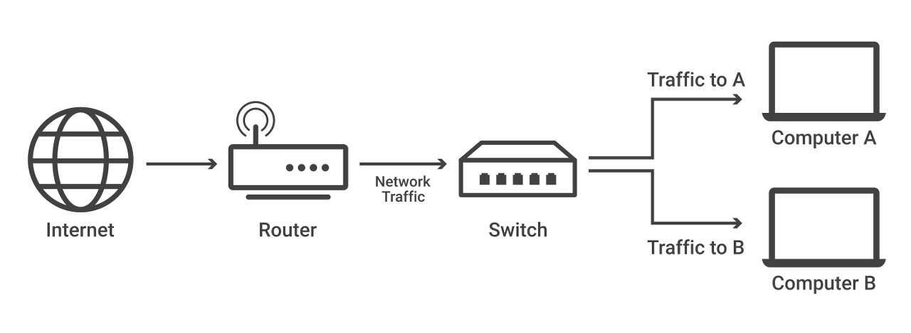 | 가정과 소규모 사무실에는 인터넷 액세스를 위한 라우터가 필요함. 많은 양의 이더넷* 포트가 필요하지 않는 한 대부분 네트워크 스위치가 필요하지 않음. |